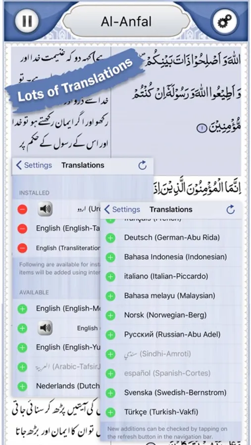 - Option to update existing content (for fixing errors in Quran text, translation or audio)