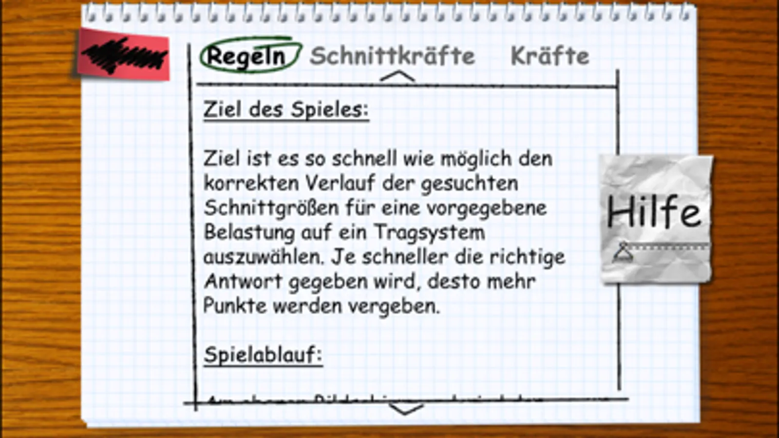 Today buildings, structures and machines are almost always designed by computer-generated diagrams of internal forces. One of the skills required by an engineer is to verify the results of an analysis and to spot internal force diagrams that can not be right. This is why the "Schnittkraftmeister" was conceived: Students get an idea of internal force diagrams by playful learning.