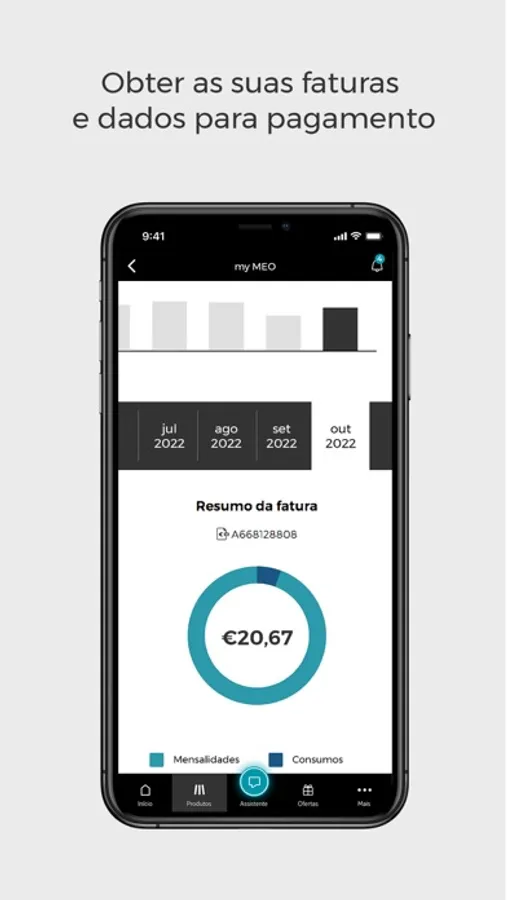 • Acesso às suas faturas e dados para pagamento