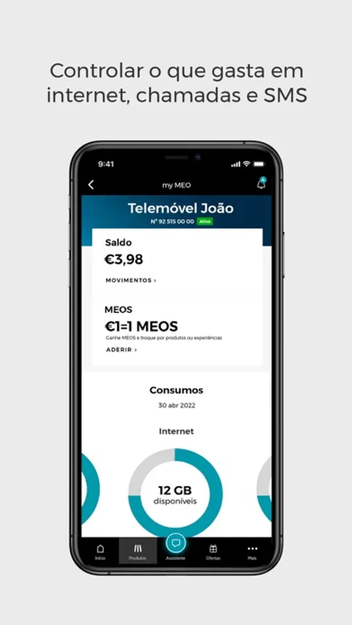 • Controlo dos consumos de internet, chamadas e SMS