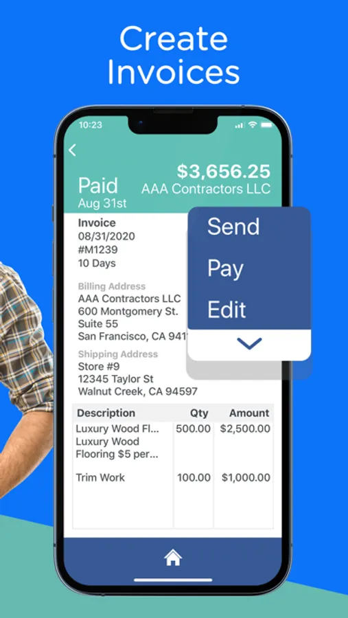 - Customize invoices and estimates: Look professional in the eyes of your customers with beautiful estimates and invoices