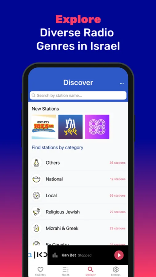 Stations are conveniently arranged by category, exposing you to leading Israeli and global radio broadcasts you couldn’t access before.