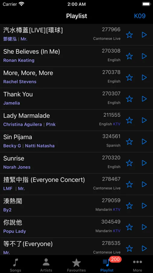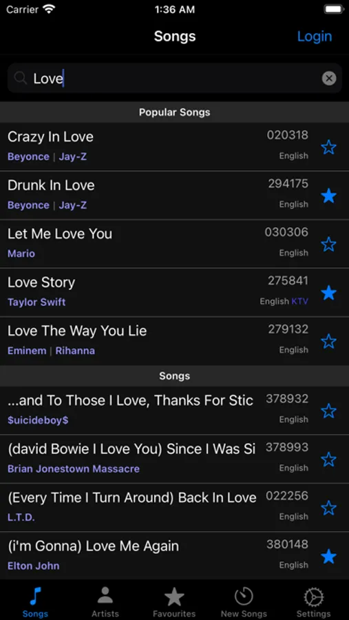 Allows searching for songs available at Bar+ Karaoke Lounge. You can search by either song name or by artist in multiple languages. Save your favourite songs for quick access. Queue the songs from your phone to your room.