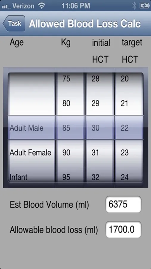 More complex functions include allowable blood loss and calculated blood loss analysis, GFR calculations and sodium correction for hyponatremia. If you are involved in cardiac anesthesia the drug infusion calculator makes determining infusion rates as simple as selecting ng/kg/min, mcg/kg/min or mg/kg/min on a dial. If you want to run any other medication, like Remifenanil, just dial in the settings and you have the rate.