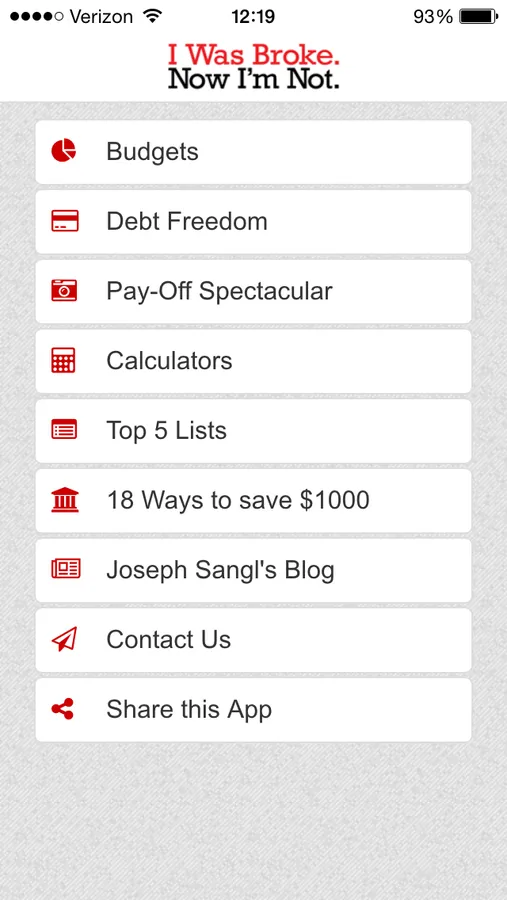 This App was created to help people accomplish far more than they ever thought possible with their personal finances. It allows the user to carry all of IWBNIN's free tools with them - budgets, debt freedom date, financial calculators, and savings tips. It includes additional features such as: Top 5 Lists and 18 Ways To Save $1,000 Right Now! When a financial question arises, this App can be used to send the question directly to the IWBNIN team using the "contact" feature.