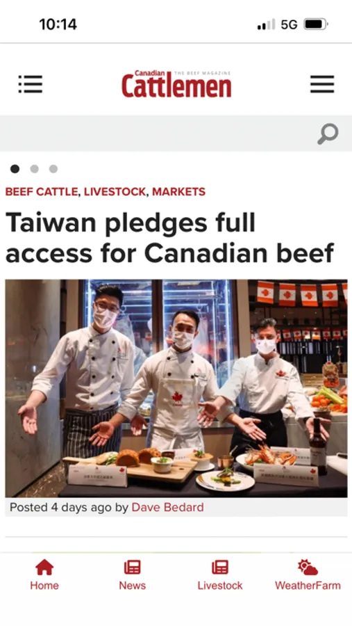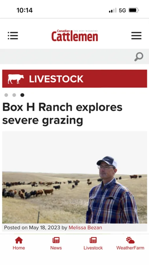 Canadian Cattlemen Mobile provides daily agriculture news, markets news, commodity prices, and local WeatherFarm weather.