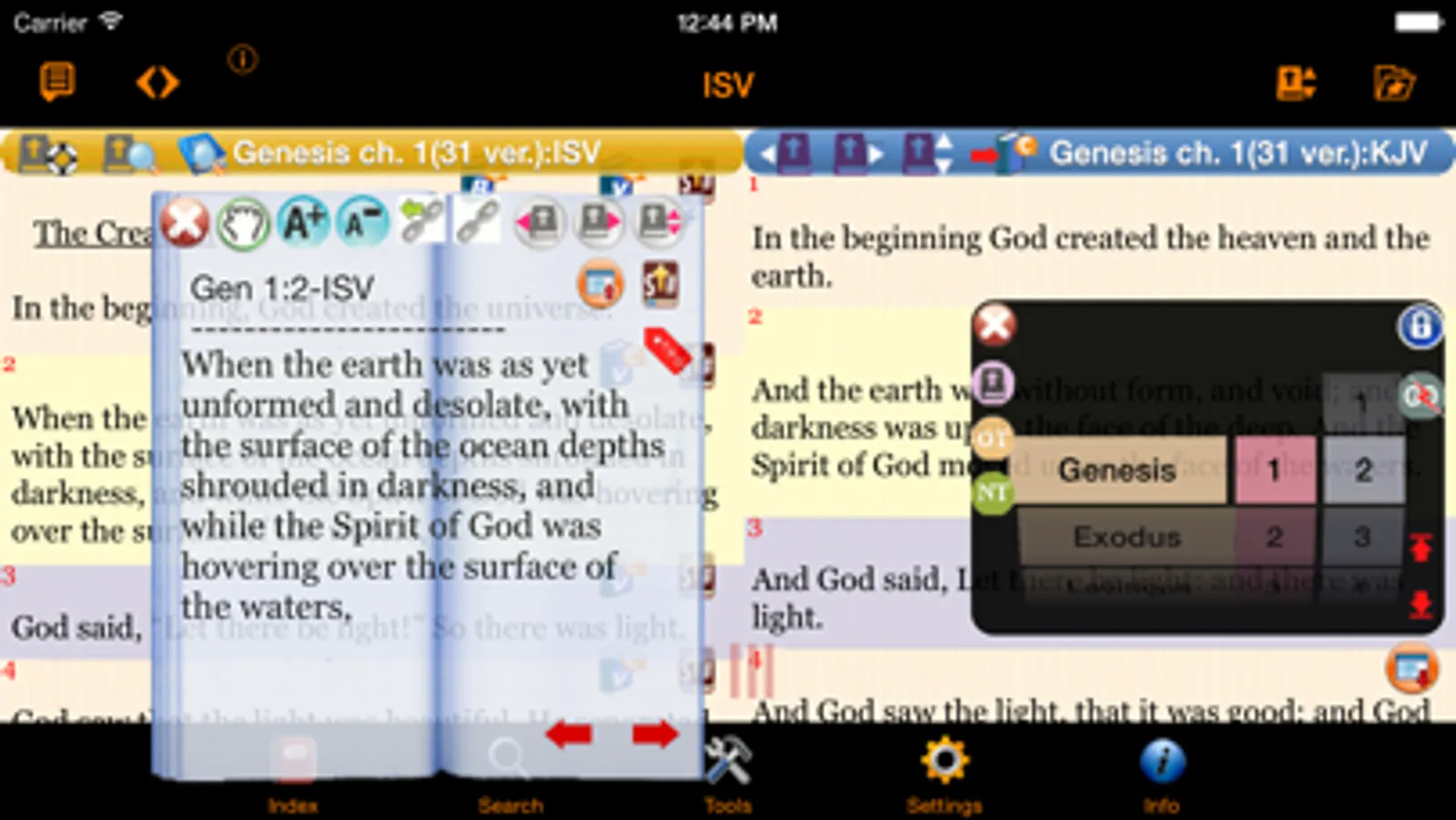 * The only app to open up to 4 bible windows(others can only have up to 2) - each bible window can adjust its own size and assign its own bible translation text. And moreover, you can assign "Bible Parallel" to one of these 4 bible windows. These features allow to have all bible translations viewable on the same screen without flipping back and forth. Plus the above "float" commentary, dictionary, personal note and bible search popup window, you can have all kinds of bible study contents shown and viewable on the same screen.