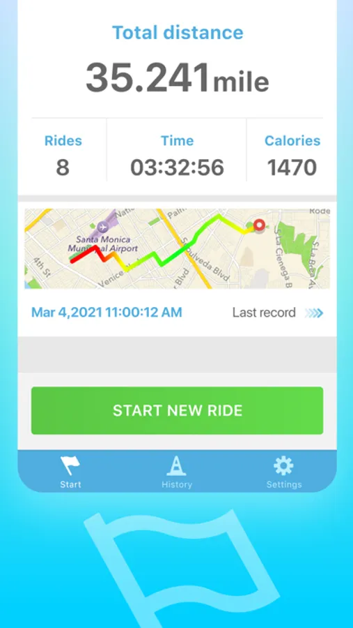 With Bicycle Ride Tracker you can easily track how much you ride, how long it was, how many calories were burned, what was the speed or elevation and finally, see that all on a map.