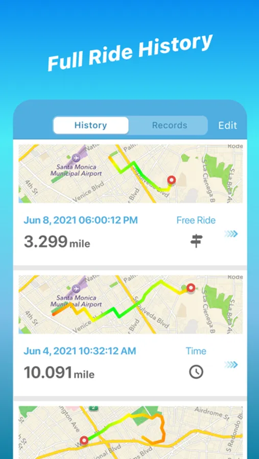 Track your exact distance and speed for each and every ride using maps.