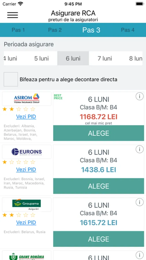 Din aplicatia i-Asigurare poti comanda asigurare RCA pe orice perioada de la 1 luna pana la 12 luni.