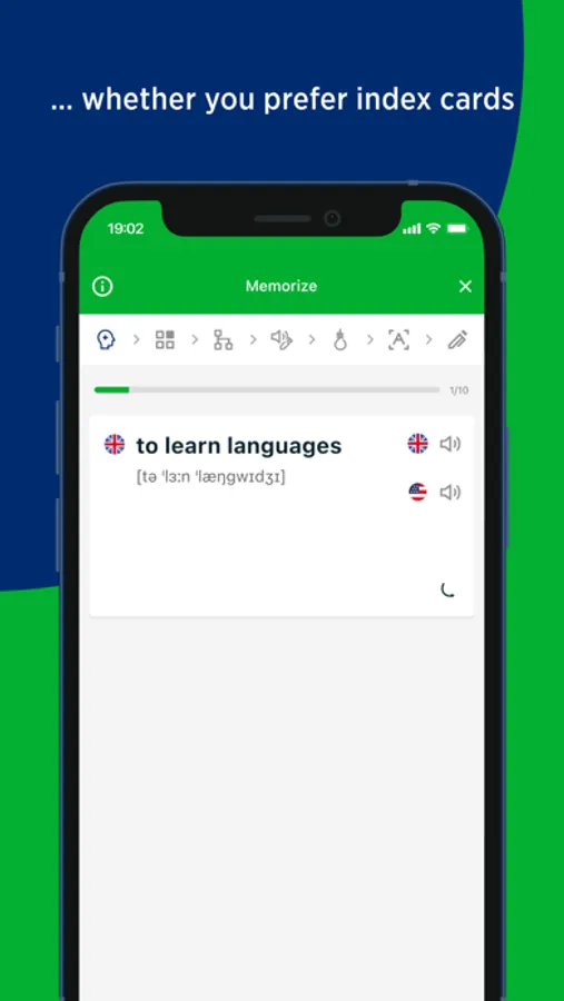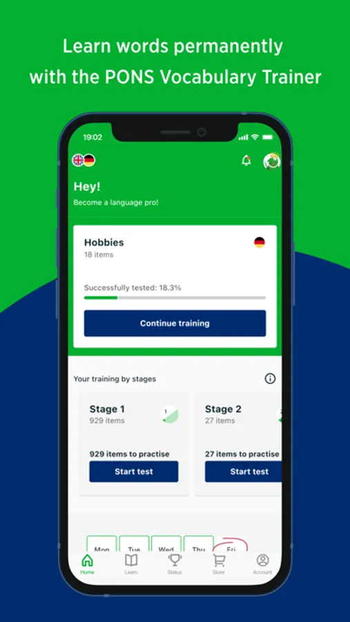 Do you learn new words, but forget them after a while? Then get the PONS Vocabulary Trainer on your smartphone. With this app you can practise your words anywhere - even when you’re offline. Thanks to its scientifically based 7-stage model, you learn your words in small chunks over a longer period of time until they’re guaranteed to stay in your memory. The app uses an intelligent algorithm to remind you when words are ready for repeating.