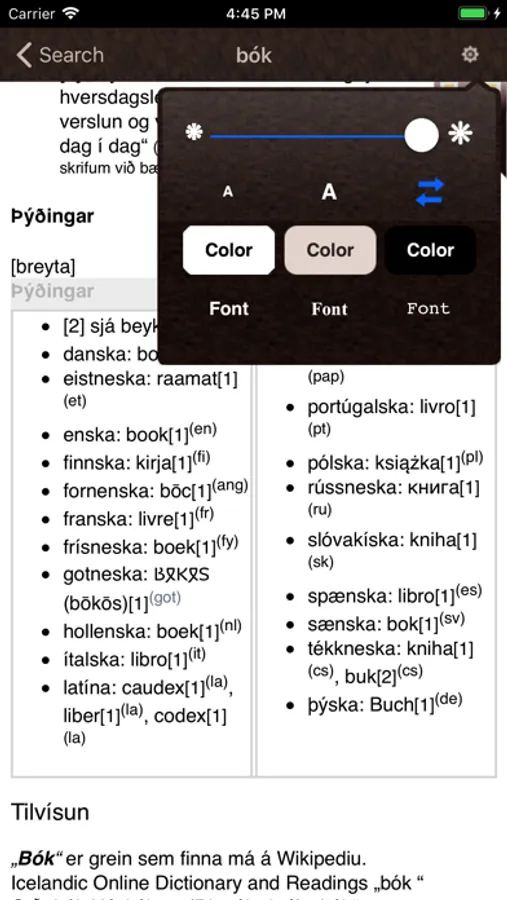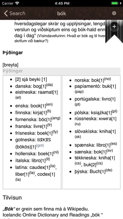 An Icelandic Language Dictionary iOS app. Contains more than 15 thousand word definitions. Works offline. No internet connection is necessary once downloaded. All words are 100 percent Icelandic and are composed in Icelandic. This app is appropriate for those seeking to learn or already fluent in the Icelandic language.