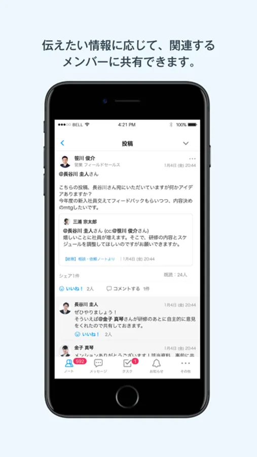 日々のあらゆるコミュニケーションをTalknoteでテーマごとにおこないます。
