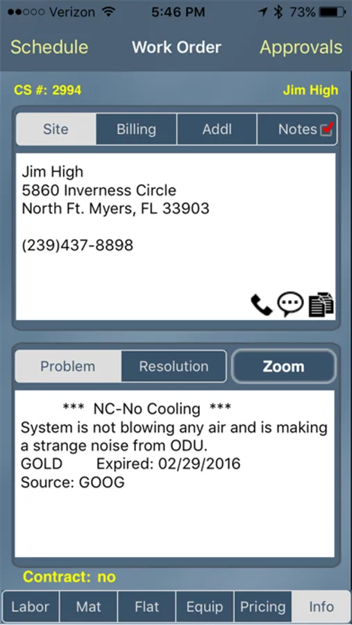 - View problem reported and site notes