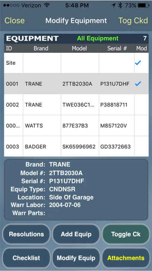 - Add/Edit equipment from the field
