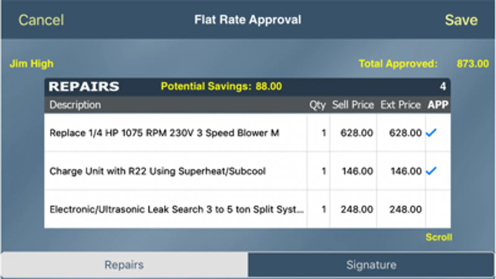 - Show savings or potential savings for service agreement customers if using flat rate billing