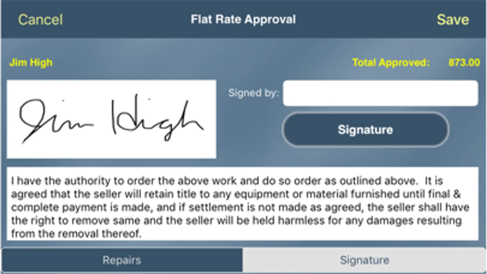 - Capture customer's signature