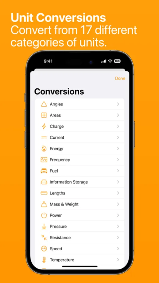 You can easily convert any of your calculations to a different unit across 17 categories such as length, area, and volume. Unit conversions are saved to your calculation history for easy review. A Calculi Pro subscription is required for this feature.