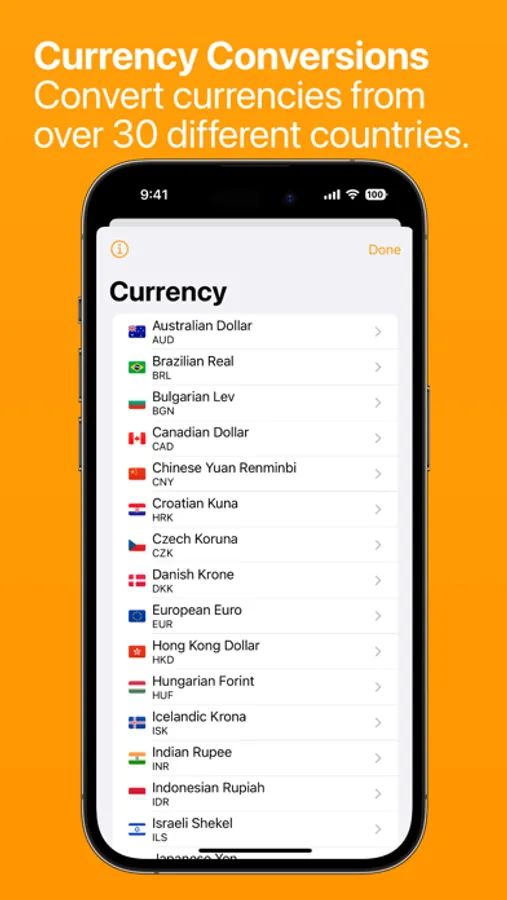 Traveling abroad? Not sure how much your lunch costs? Calculi has you covered with support for over 30 different currencies around the globe (data is updated daily from the European Central Bank). A Calculi Pro subscription is required for this feature.