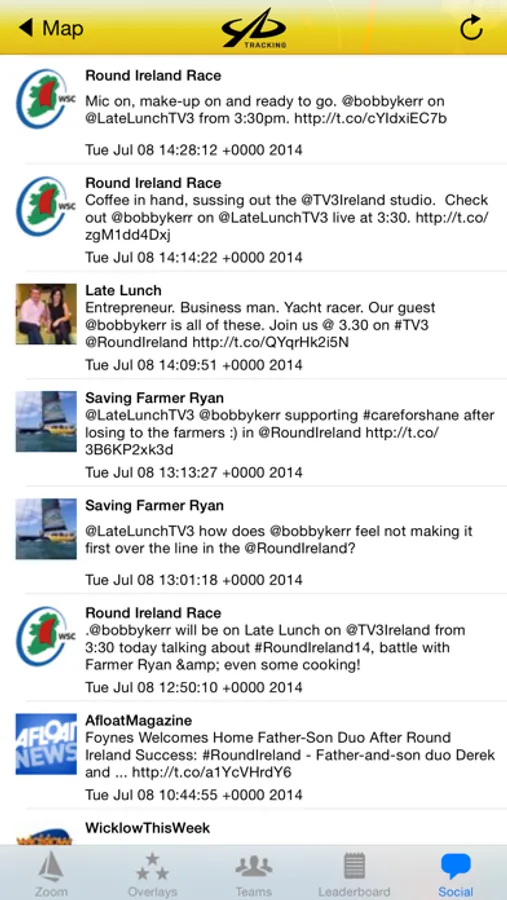 - Social media feed with news about the race