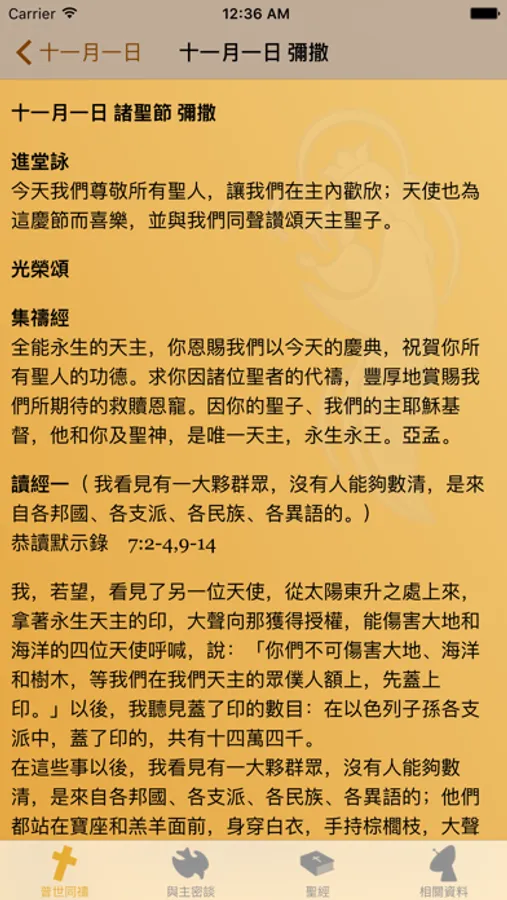 iBreviarium is a Catholic daily readings and bible app. The content is only provided in Traditional and Simplified Chinese. The following is a description of the app in Traditional Chinese.