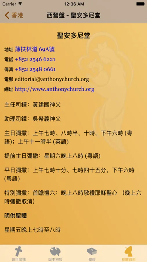 ※ 聖堂資料與彌撒和明恭聖禮時間表