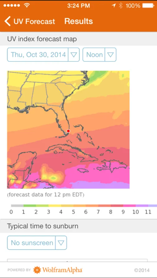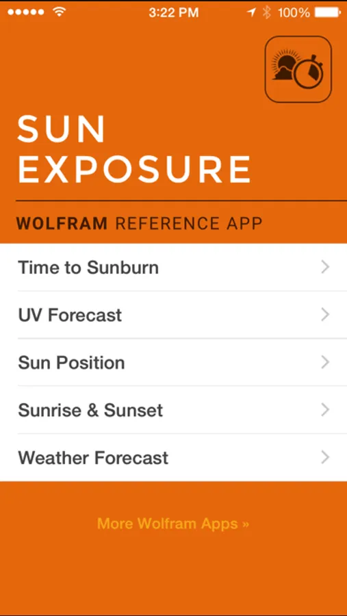 The Wolfram Sun Exposure Reference App draws on the computational power of Wolfram|Alpha's supercomputers over a 3G, 4G, or Wi-Fi connection.