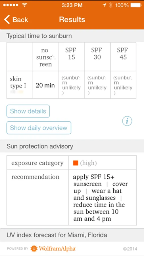 The Wolfram Sun Exposure Reference App is your ultimate beach essential this summer and all year! It calculates how long your skin can be exposed to the Sun without burning based on your skin type, location, time, and the level of Sun protection factor (SPF) you might be using. You can also compute a UV forecast for your location, along with a sun protection advisory. Bonus features include sunrise and sunset time, current Sun position, and weather forecast.