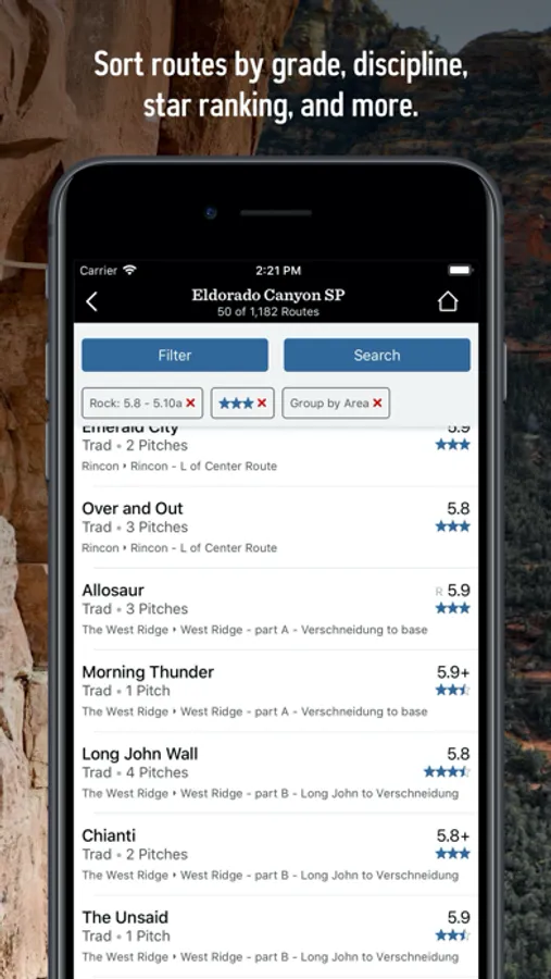 • Search our entire database of 155,000+ climbing routes, even offline.