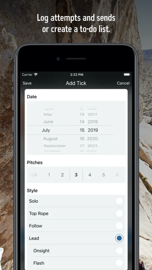 • Rate routes and photos, keep track of attempts & sends, or make a to-do list