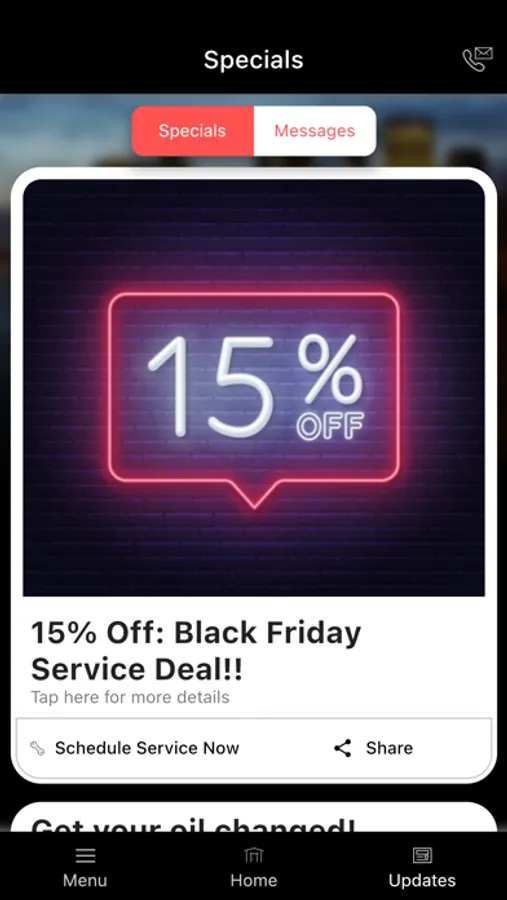 - The most powerful messaging system to alert you of specials, coupons, and announcements.