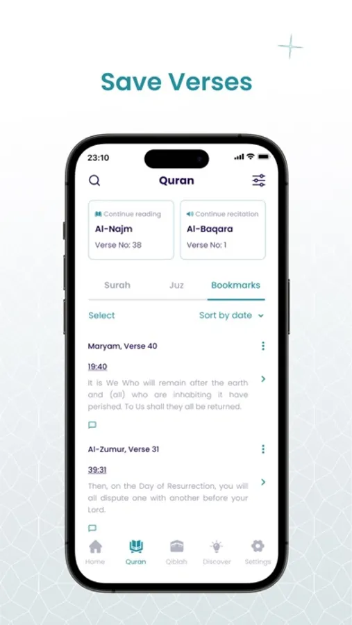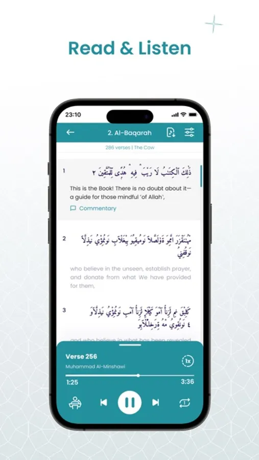 Listen to 10 different recitations, including English and Arabic (stream or download for offline mode)