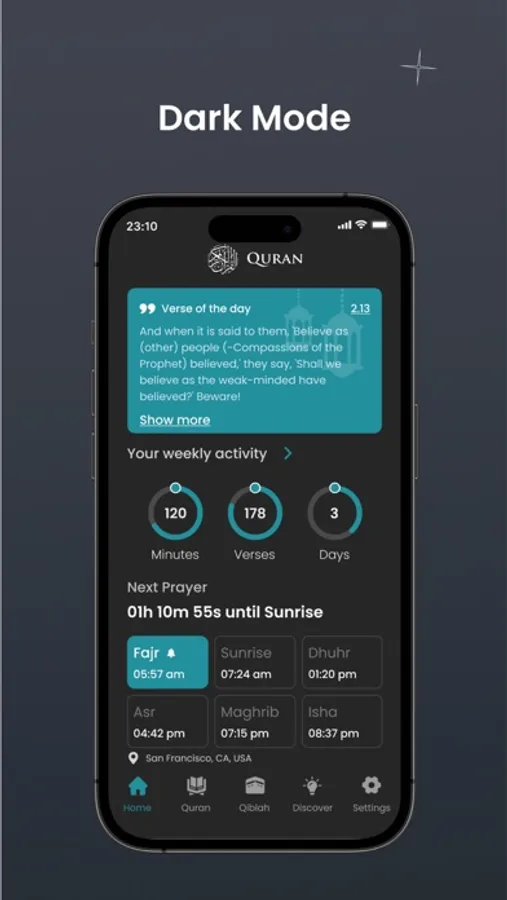 Customize the Quran app to your liking with dark mode and four beautiful Arabic and English fonts and font sizes.