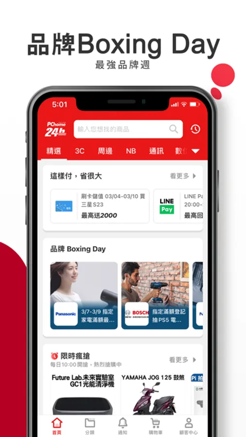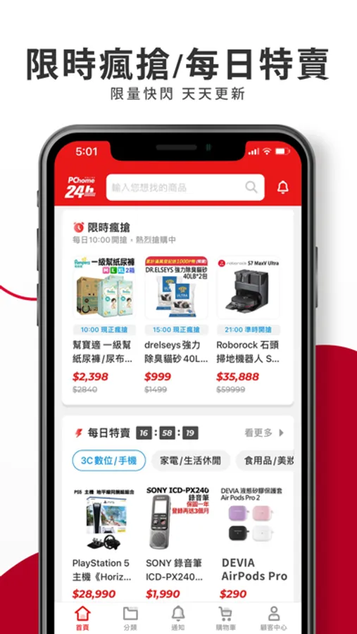 PChome24h購物 App 專為行動裝置量身打造,讓你隨時隨地輕鬆選購。