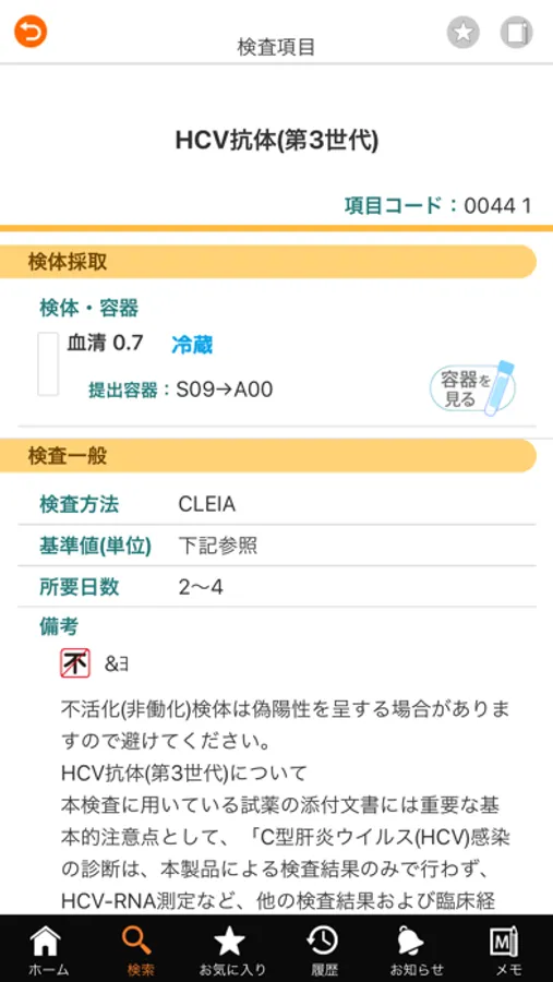 Up to 30 test items can be registered as favorites in this application. Please use it for the test items that you check frequently.