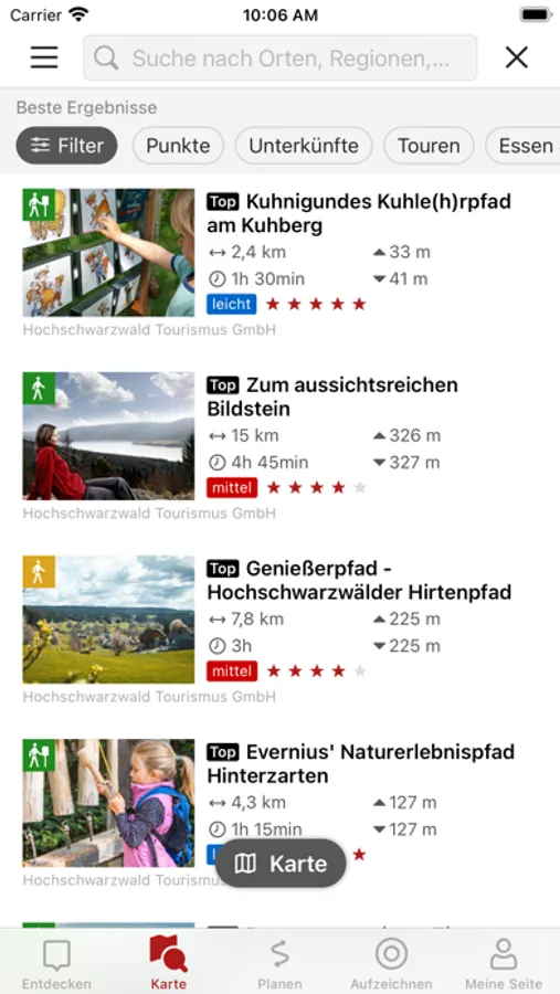 Über 400 Touren für den Hochschwarzwald. Die Schwarzwald Region rund um Feldberg, Titisee, Schluchsee und Wutachschlucht. Für die Tourenplanung von zu Hause aus und als Tourenführer vor Ort. Funktioniert auch ohne Mobilfunkverbindung.