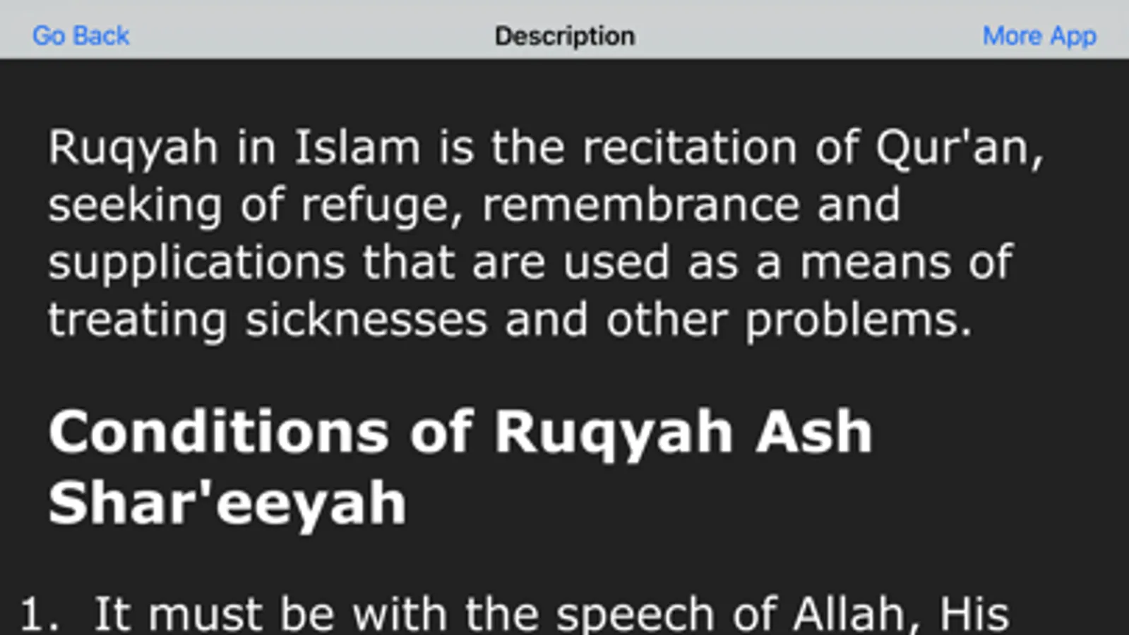 Ruqyah in Islam is the recitation of Qur'an, seeking of refuge, remembrance and supplications that are used as a means of treating sicknesses and other problems.