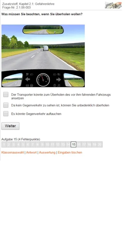 Mit dieser App können Sie Ihren Kenntnisstand zur theoretischen Fahrprüfung auf den Prüfstand stellen. Sie enthält zu allen Klassen die Fragen aus dem amtlichen Fragenkatalog. Am Ende jedes zufällig generierten Bogens erfolgt eine Auswertung mit Fehlerpunkten. Die App ist für alle gedacht, die ihr Wissen testen oder nochmal etwas auffrischen möchten.