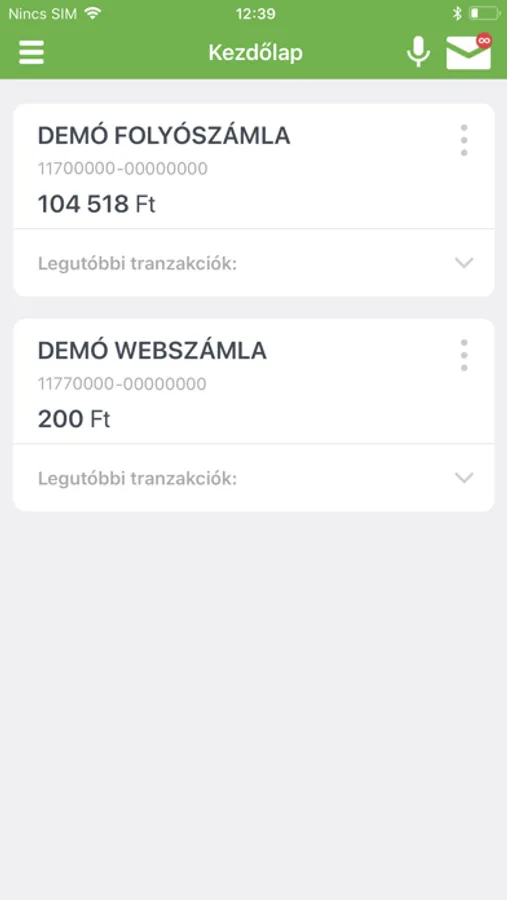 - Beállítások:PIN módosítás, gyors egyenleg engedélyezése, ujjlenyomat engedélyezése, profilbeállítás