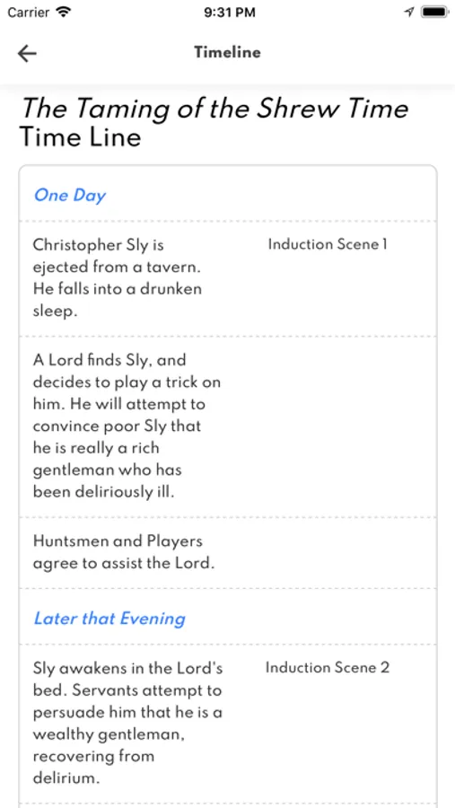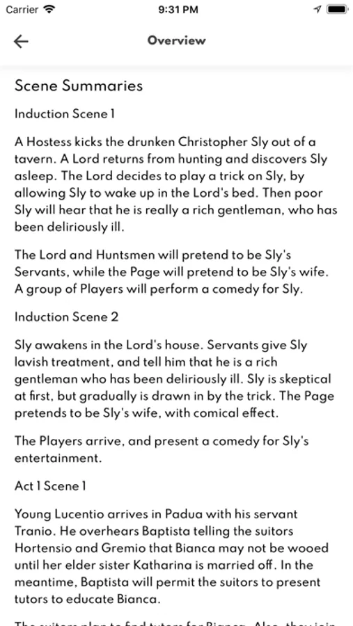 A detailed overview of every act and scene in the play.