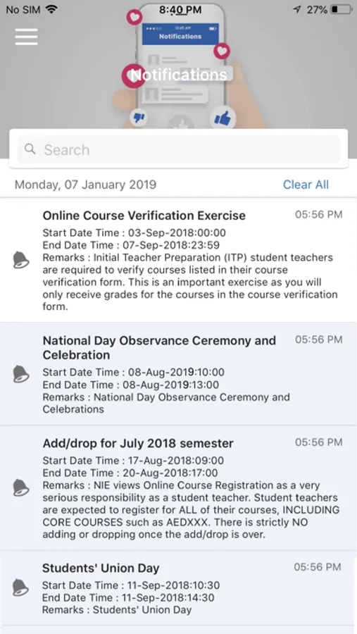 NIE Mobile is created for visitors, staff and students of NIE to keep abreast about the activities relating to the institute. The intuitive and user-friendly interface makes it easy for users to navigate and obtain the information that they need.