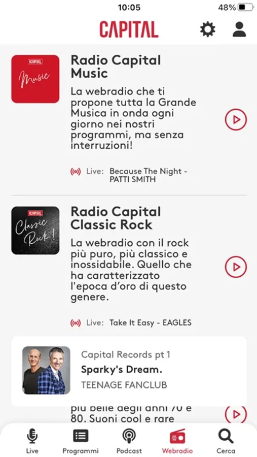 Infine, all’interno della sezione Web Radio potrai ascoltare le selezioni musicali con il sound di Capital, create per accompagnarti in tutti i momenti della giornata.