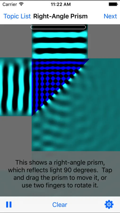 There is also a full version of this app, called "Ripple Tank", which allows you to create your own experiments, save and load, and change colors. It is also optimized for iPad.