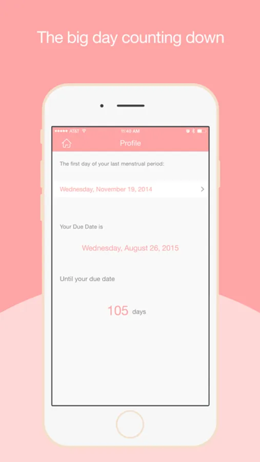 ⁃ Input your last menstrual period, Baby Kicks Monitor with show your Delivery Due Date and the days remains to that big day.