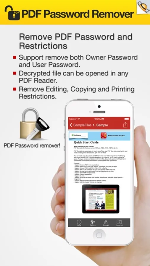 PDF Password Remover iOS universal is a small yet powerful PDF decryption tool on iOS devices. It enables iPhone, iPad users to remove copying and printing restrictions from encrypted PDF files. It's quick and easy-to-use. Click “...More” to learn why you should download this App today!