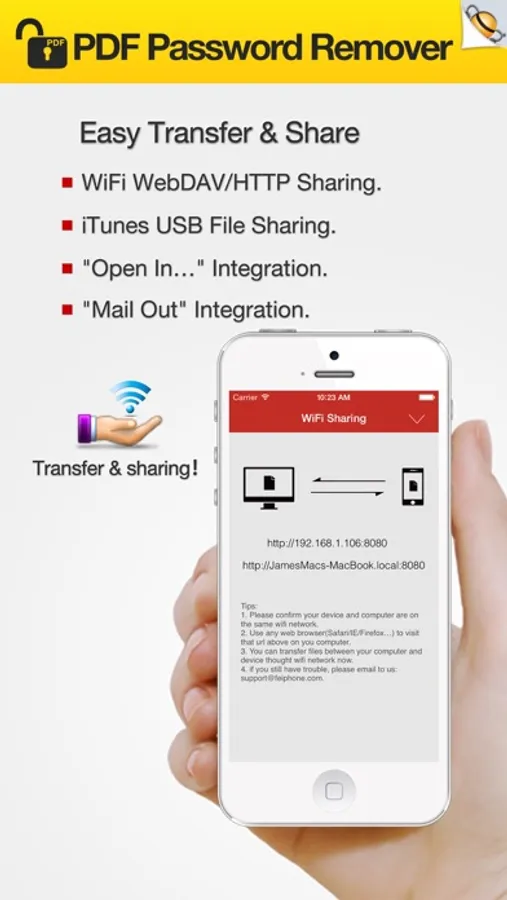 • Send files to iBook, PDF Reader, GoodReader and other apps("Open In.." integration)