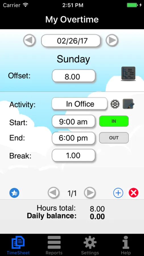 Time keeping against your daily standard hours to calculate your surplus hours…on the go and made simple !
