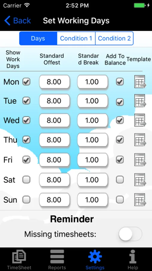 - Set your tracking preferences (minute intervals, working day defaults, etc)