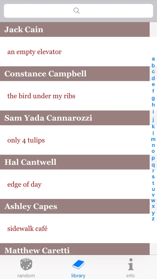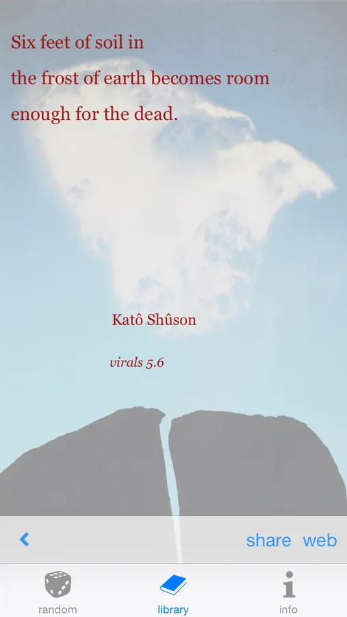 Explore the world of haiku with this app from The Haiku Foundation. THF Haiku puts a collection of hundreds of beautiful poems from around the world at your fingertips so you can enjoy them anywhere. Search through the library by author, source, or content, or shake your phone for a random selection from the entire collection. As Jim Kacian, founder of The Haiku Foundation, says: "Live with these poems a little bit every day and you will find yourself entering a world of special noticing, heightened significance, and more natural relationships."