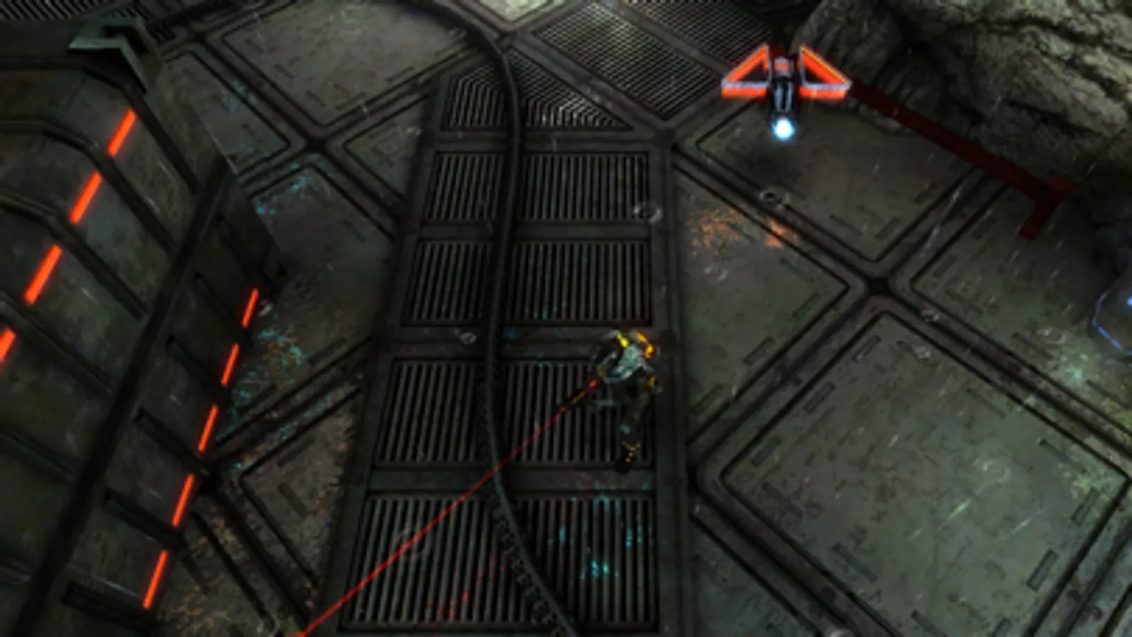 In the game you will run around shooting various robots, unlocking gates that are followed by red lines.